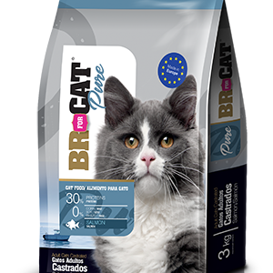 superiores a $000.000Fórmula especializada BR Pure para gatos adultos castrados. Enriquecido con salmón y nutrientes para controlar el peso.