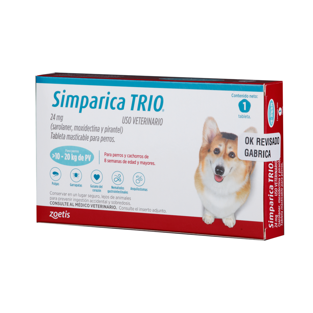 superiores a $000.000Tableta antiparasitaria Simparica Trio Azul para perros medianos de 10 a 20 kg. Protección total contra pulgas, garrapatas, lombrices y gusanos del corazón.