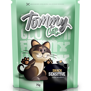 superiores a $000.000Snack funcional Tommy para gatos sensibles. Apoyo digestivo suave. Presentación 75 g.